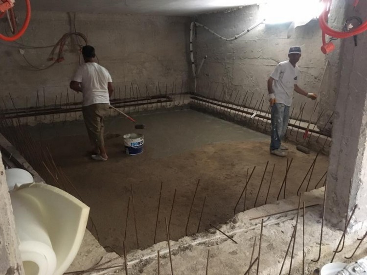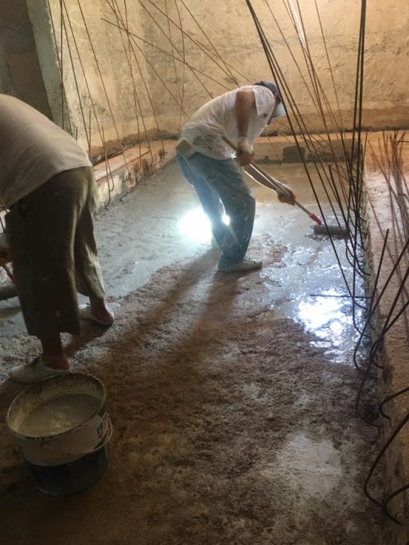 Surface preparation: The application surfaces should be dampened previously. The dampening process is made until the surface is saturated 2 hours before starting the application. This process is not necessary if the surface is damp or wet beforehand. The application surfaces should be cleaned from particles such as oil, dirt, mud. If there are segregation, concrete disturbances, and holes, firstly these should be repaired with ISONEM M 03 Elastic Repair Mortar with applying ISONEM D 10 LATEX. Dilatations should be filled with ISONEM A4 elastic filler in advance. The mixture should be prepared after the surface is ready.