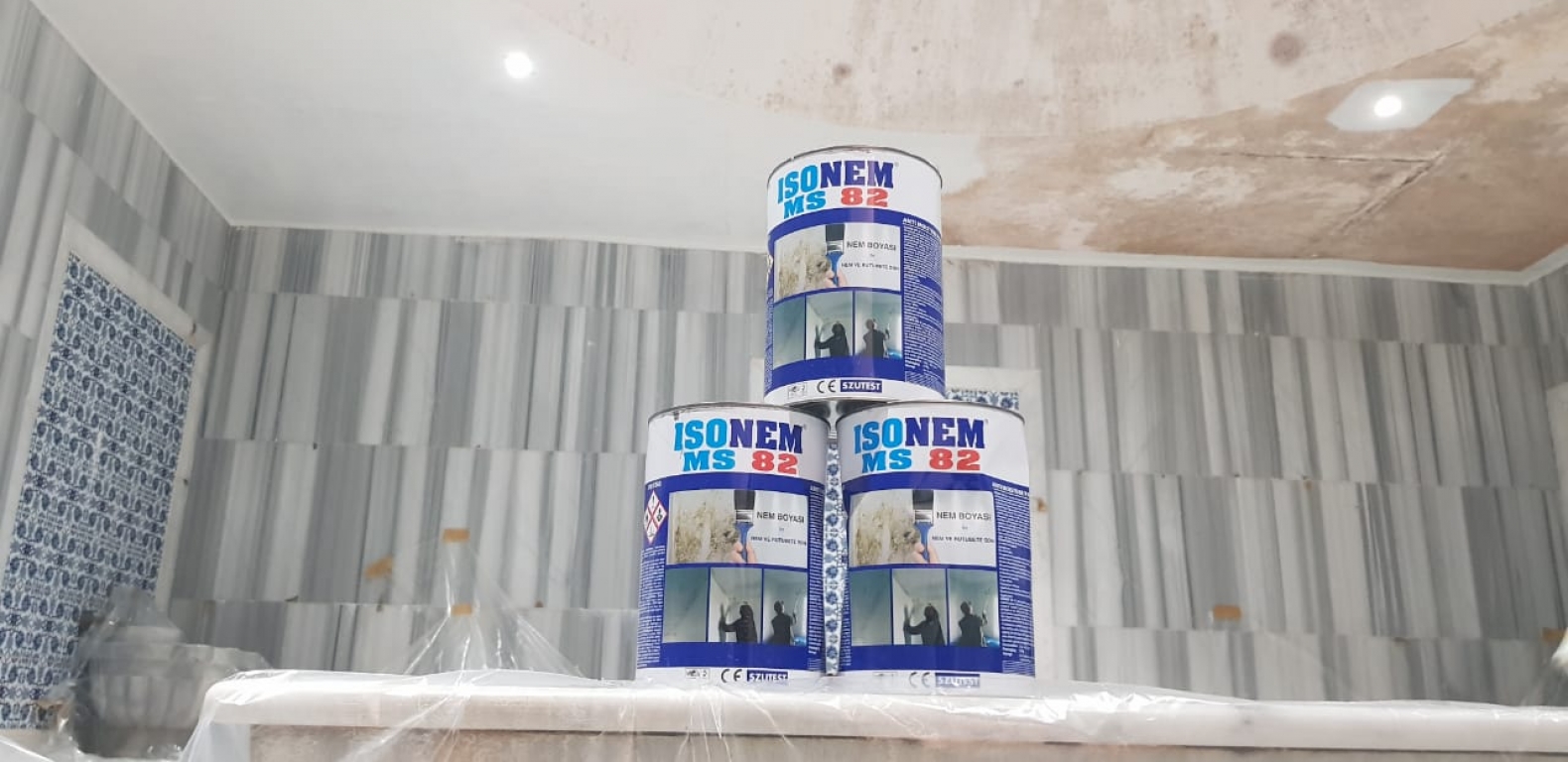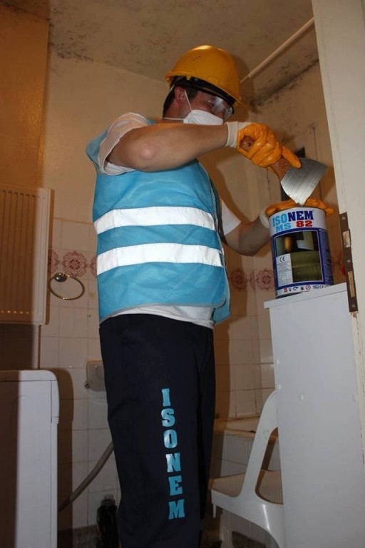 Surface preparation: ISONEM MS 82 anti moisture paint is ready to use, no primer is required. Formation in black color that occurred on walls must be cleaned before application. The application surface may be humid, damp or dry. It can be applied to painted or unpainted all surfaces. If there are swelling parts on the painted surfaces, the application surfaces should be cleaned and a tough surface should be obtained by using appropriate repair mortar.