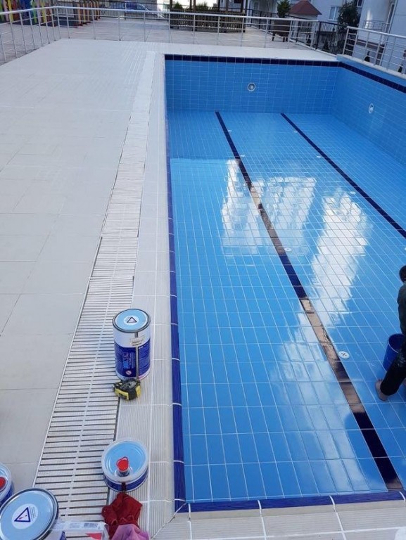Application method: It should be applied with a brush, roller or appropriate spray and left to dry. The second layer should be applied after the first coat is dried, in 24 hours. The prepared mixture should be consumed in 5 - 6 hours. After the application, the pool should be left to curing 10 days, before filling water.