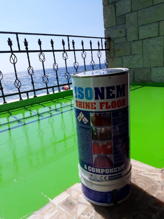 ISONEM SHINE FLOOR it is a two-component, resin-based, self-leveling solvent-based floor coating. It forms an elastic and unique layer after drying. It is not affected by UV and outdoor weather conditions. It does not make yellowing, fading or peeling off in time. It is resistant to abrasion. It is not affected by pedestrian and vehicle traffic. It is resistant to various chemicals, and acids. Its adherence is perfect. It is polyurethane-based, solvent-based, two components.