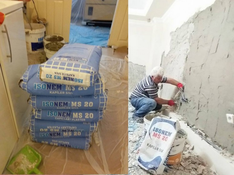 ზედაპირის მომზადება: ზედაპირი უნდა გაიწმინდოს მარილით დაზიანებული ძველი თაბაშირისგან, ხოლო ბზარები და ნაპრალი უნდა შეივსოს ISONEM M03 ელასტიური ნაღმტყორცნით.
