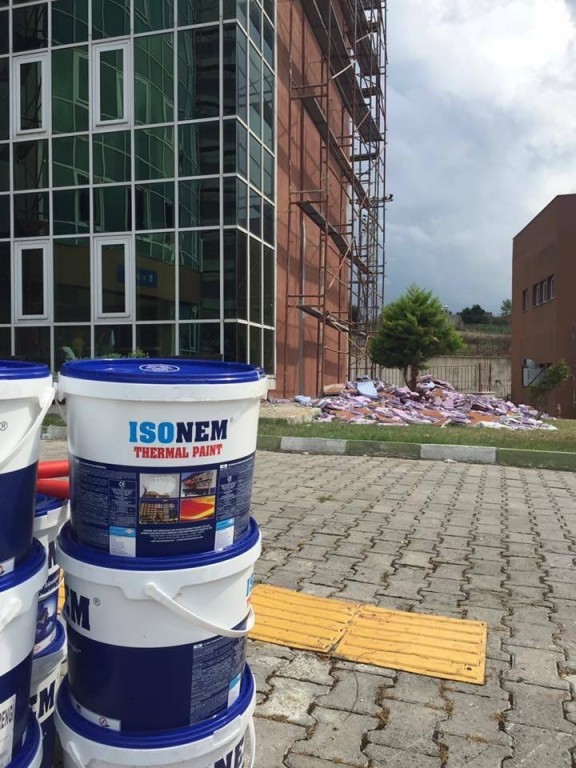 Isonem Thermal Paint представляет собой эластомерную смолу на основе смолы, содержит специальные вакуумные микросферы, обладают паровой проницаемостью, на водной основе, низкой теплопроводности, высокой поглощаемости солнечного света и высокой поверхностной тепловой передачей. Его активность с научной точки зрения доказана специальная изоляционная краска, которая обеспечивает тепловую изоляцию и водную изоляцию во внутренних и внешних фасадах. Он обеспечивает экономию энергии для зданий до 40% в зависимости от количества прикладных слоев при затратах на нагревание и охлаждение. Когда Isonem Thermal Paint со специальными вакуумными микросферами используется в качестве внутренней настенной краски, она отражает сияющее тепло, генерируемое внутри внутренней среды, и когда она используется на внешней стороне, входящее сияющее тепло отражается обратно на внешнюю часть. При использовании на крышах он отражает минимум 80% солнечных лучей благодаря своей керамике. В то время как вода никогда не проходит от поверхности пленки, нанесенной из -за тепловой краски, влага внутри здания испаряется от конструкции.