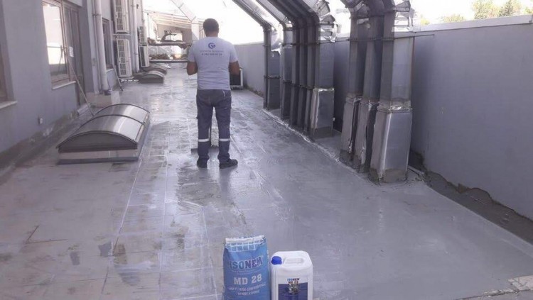 Karışımın hazırlanması: Isonem MD 28 iki bileşenden oluşur. İlk bölüm, toz polimer ve sertleştiriciden oluşan bileşen A'dır ve ikinci bileşen, sıvı polimerden oluşan sıvı bileşeni B'dir. Sıvı formdaki B bileşeni (10 kg) temiz, yeterince büyük bir kaba yerleştirilir. Bir karıştırıcı yardımı ile sürekli karıştırma sıvısına yavaşça bir bileşen (20 kg) toz eklenir ve hiçbir topak kalmayacak şekilde hafifçe karıştırılır. Karıştırma 5 dakika sürdürülmelidir. Karıştırmanın sonunda, homojen, fırçalanabilir bir harç elde edilir.